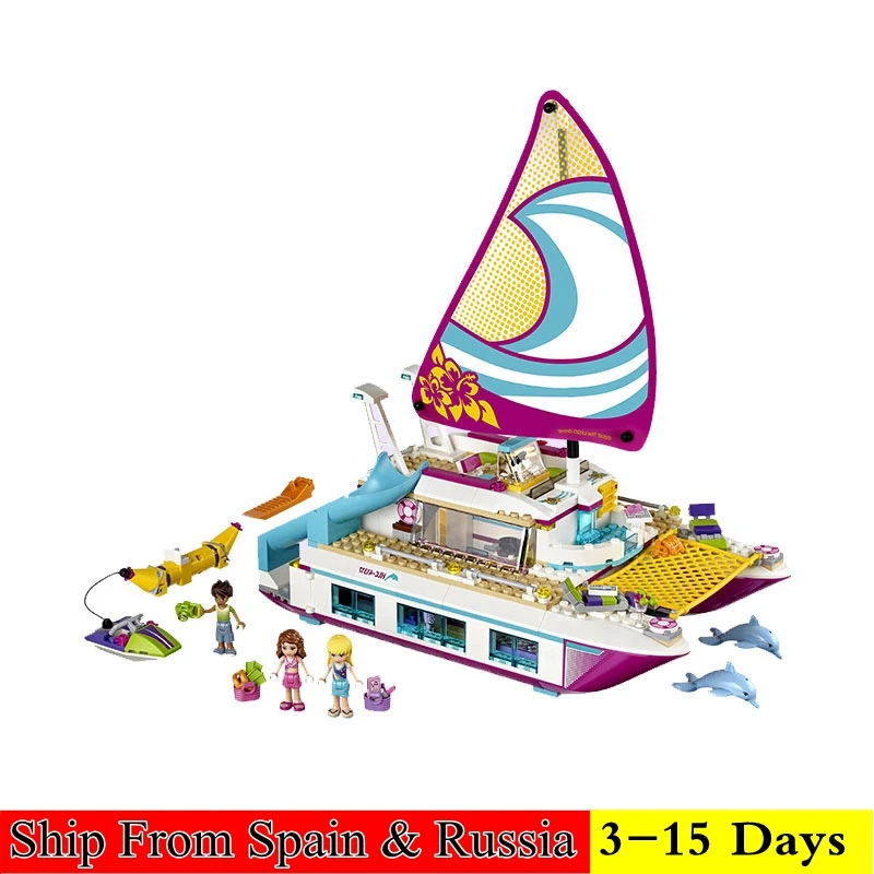 discount Legoing Friends Figures For Girl Series The Sunshine Catamaran Ship Model Set Building Blocks Toys